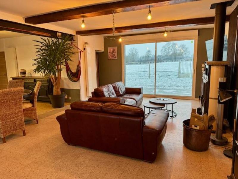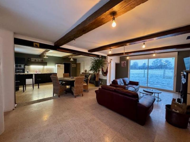MAROILLES 243800.00€ FAI Corps de ferme, en partie rénové, au cœur de la campagne avesnoise, bâtie sur et avec plus de 1,3 hectare, vous enchantera par ses volumes, ses nombreuses possibilités d'évolution et son exposition plein sud. Idéalement pensé pour les amoureux de la Nature ou passionnés de chevaux, la partie habitation développe 160 m² habitables comprenant, vestibule et dégagement, bureau(dressing), chambre, grand séjour de près de 70 m² avec espace cuisine ouvert, une salle de douche et un wc indépendant. A l'étage, un grand palier avec chaufferie et deux chambres restent à rénover. Des surfaces annexes, greniers aménageables, grange, box, double garage , atelier, complètent l'ensemble pour environ 175 m². Système de chauffage central au gaz récent. L'avis du Pro : Vue imprenable sur le bocage avesnois, du volume , faible charge foncière!